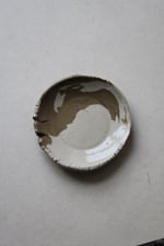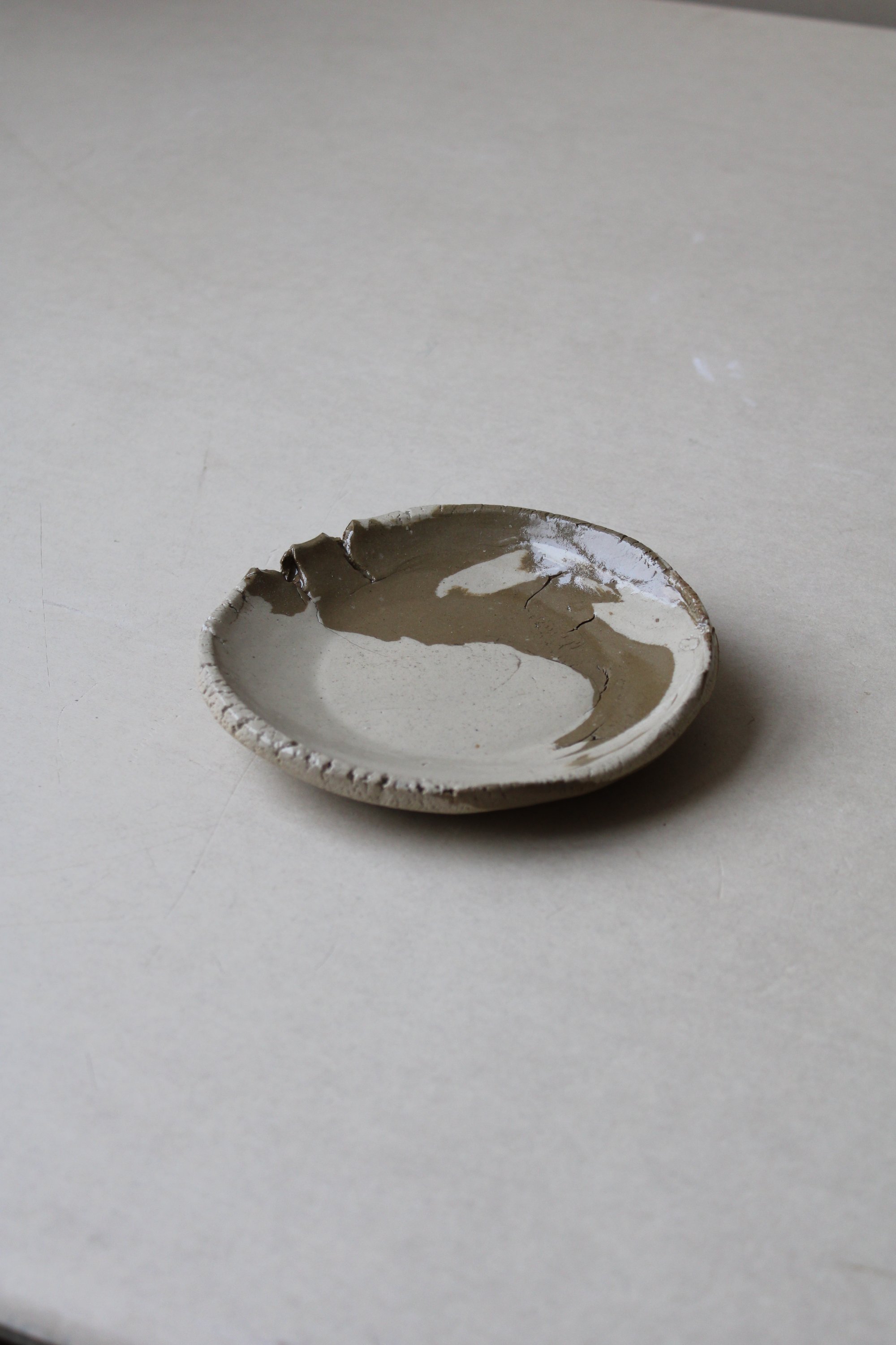 la serie empreinte, vient d'un geste spontané, la terre est mise à plat à la main, puis sèche sur une contre forme d'assiette. forme traditionelle et forme brute.