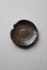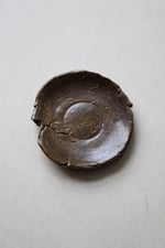 la serie empreinte, vient d'un geste spontané, la terre est mise à plat à la main, puis sèche sur une contre forme d'assiette. forme traditionelle et forme brute.