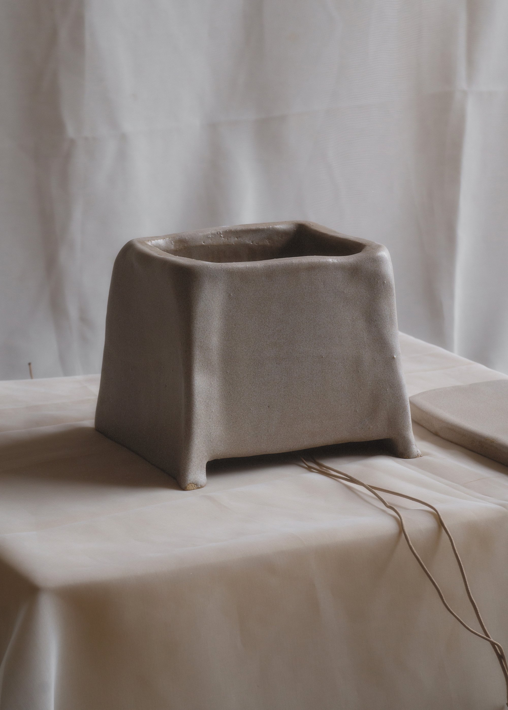 dimensions / 12x12xh18cm Legere signifie «cueillette» ou «cueillir» en latin. Pour cette collection, j’avais envie de revenir aux sources de la consommation : la cueillette. Cueillir est l’un des premiers gestes de l’homme : cueillir pour se nourrir, cueillir par la terre. C’est pourquoi, ici, les objets se dessinent grâce à cette matière. Après la cueillette vient la question de la conservation : conserver une épice, une fleur, une herbe, une céréale, un liquide, un fruit... J’ai commencé par créer de petites boîtes, comme celles que ma grand-mère utilisait pour conserver ses épices et autres. Puis j’ai agrandi la forme, comme pour imaginer des saladiers qui viendraient garder nos fruits ou nos légumes. Ensuite, un panier pour les ramasser, et enfin des assiettes pour les servir. Mais il me manquait quelque chose pour être juste dans mes gestes, dans mon récit : il fallait cueillir la terre. Trouver une terre locale, qui, une fois façonnée ou appliquée comme un engobe, révélerait des couleurs et des aspérités propres à une terre de cueillette. images. crédit THOMAS ROGER