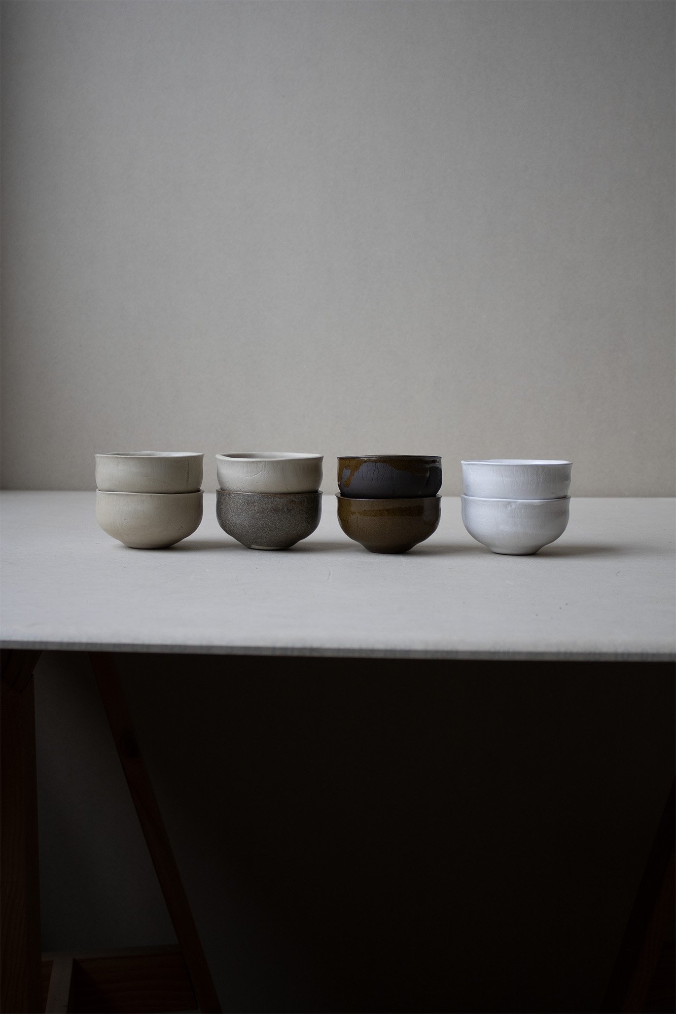 matériaux : grès blanc + émail gris mat